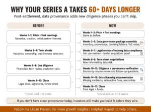 Series A fundraising can drags on for 60+ extra days when founders don’t have an AI due diligence checklist. This post breaks down what changed after recent settlements and what readers should audit now
