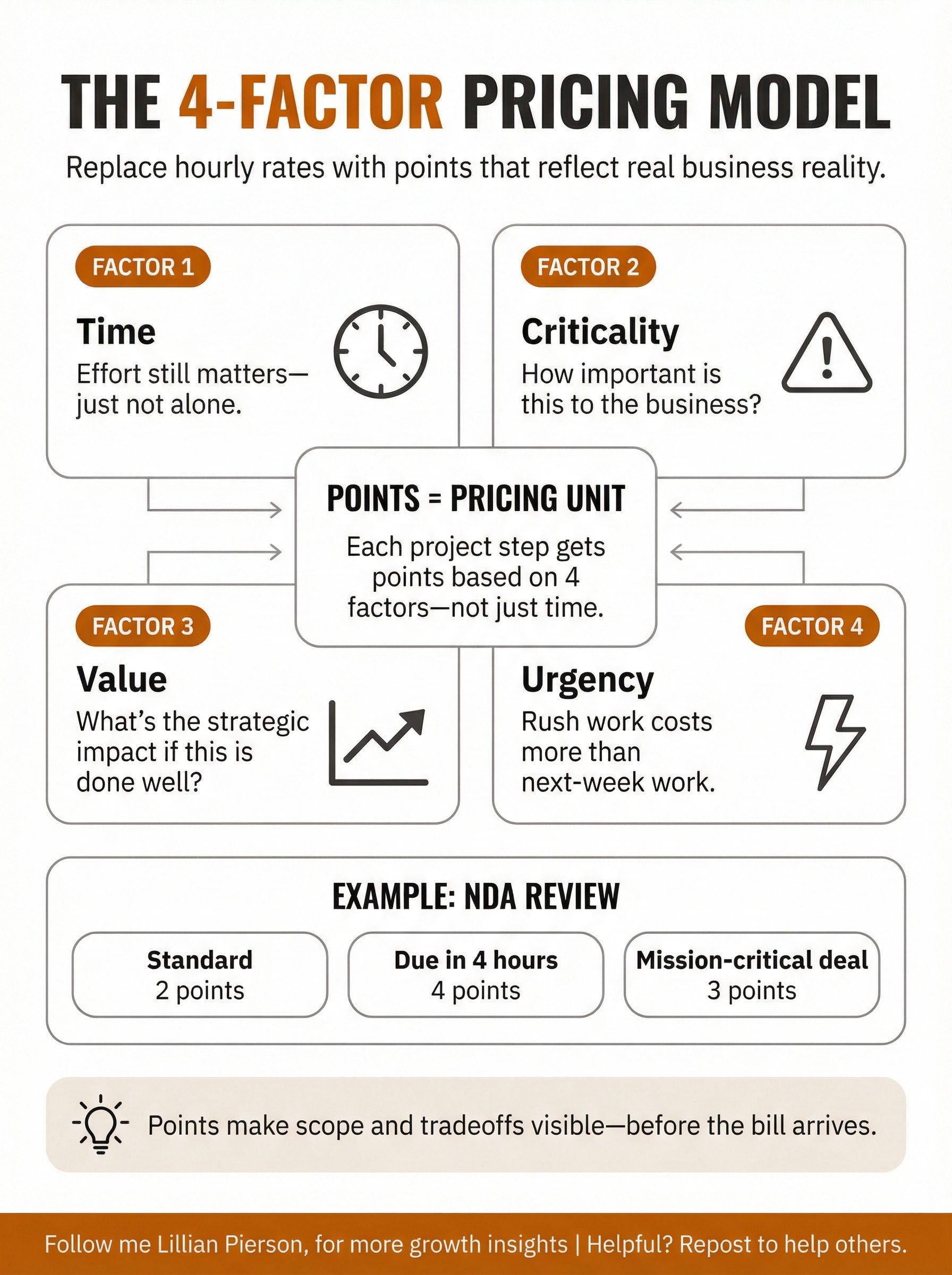 Or put another way, the administrative overhead of hourly billing isn’t just internal cost. It’s opportunity cost – the time you could be spending deepening client relationships and solving bigger problems.