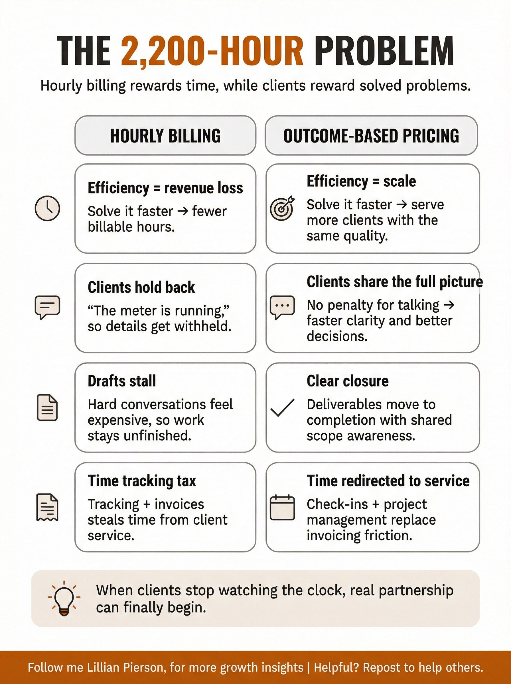 The question isn’t whether hourly billing is “bad.” It’s whether your business model aligns your success with your clients’ success.
