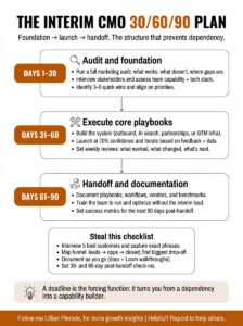 When I learned about “interim CMO services” last week (yes, on YouTube, yes, while prepping a pitch), it felt like finally having language for what I’d been intuiting. The model I’d been stumbling toward had a name, and more importantly, a clear structure I could offer to founders.