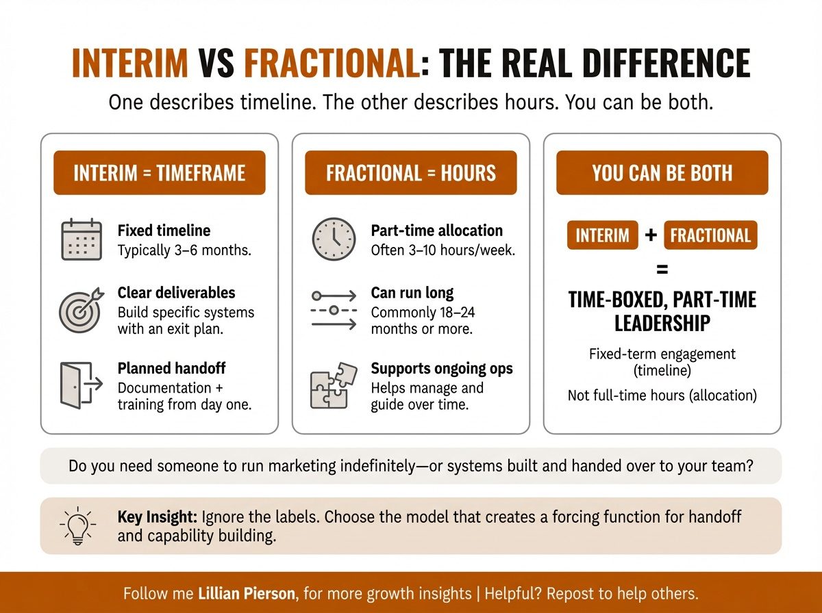 The blog posts and agency websites muddy this constantly. They’ll tell you interim is for emergencies and fractional is for growth. But that’s not the real dividing line.